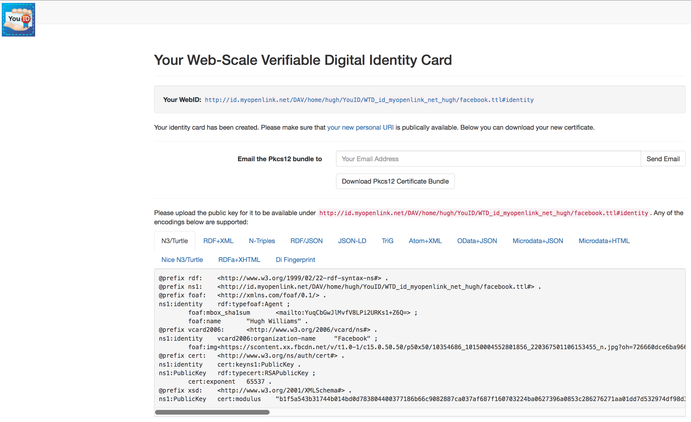 N3/Turtleor any of the other supported formats should be copy and pasted to thespecified in the previous step.WebID-Profile Document